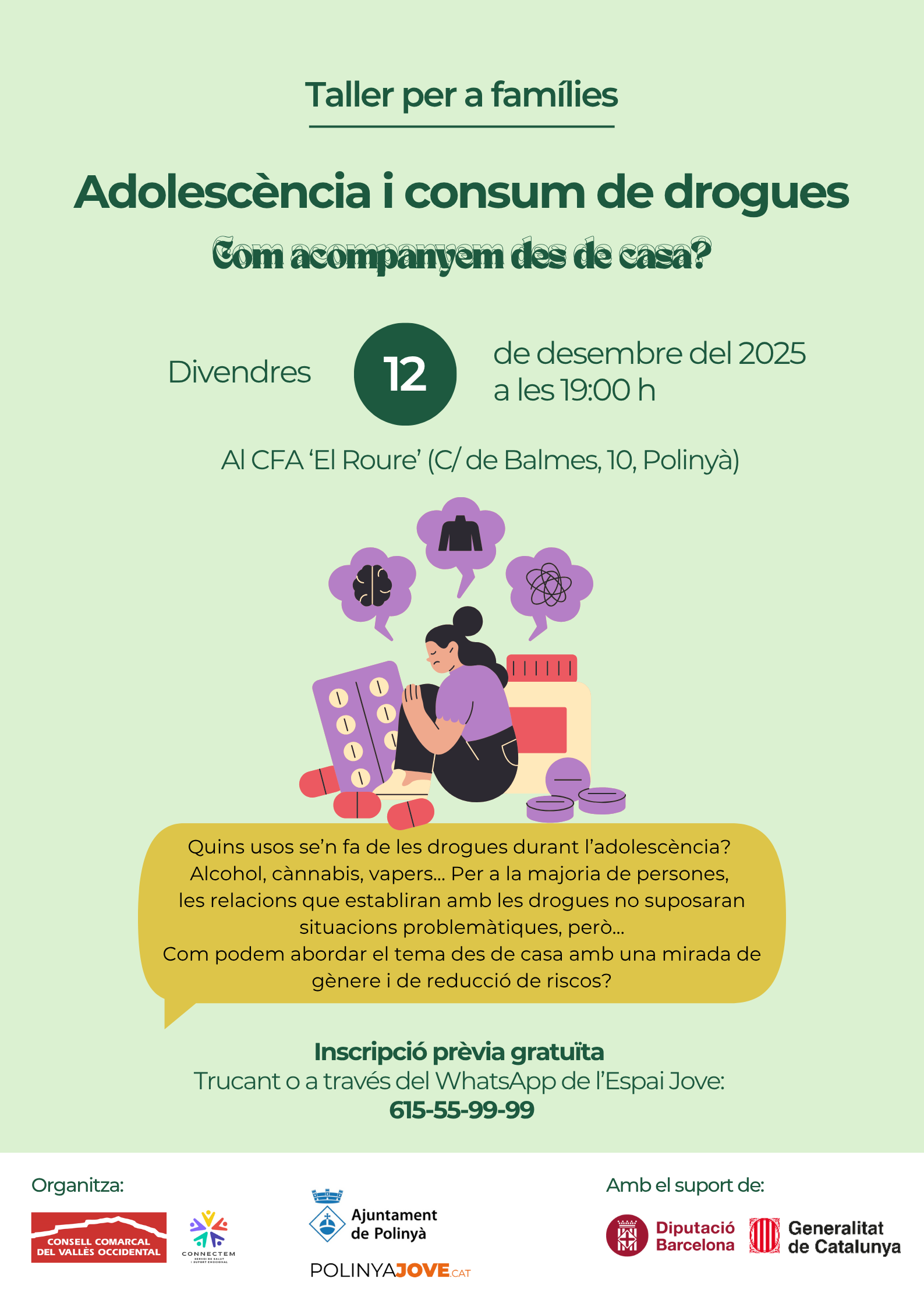 Amb l’objectiu de donar eines i obrir un espai de diàleg segur, s’ha programat el taller “Adolescència i consum de drogues”, una sessió adreçada específicament a mares, pares i tutors de joves.